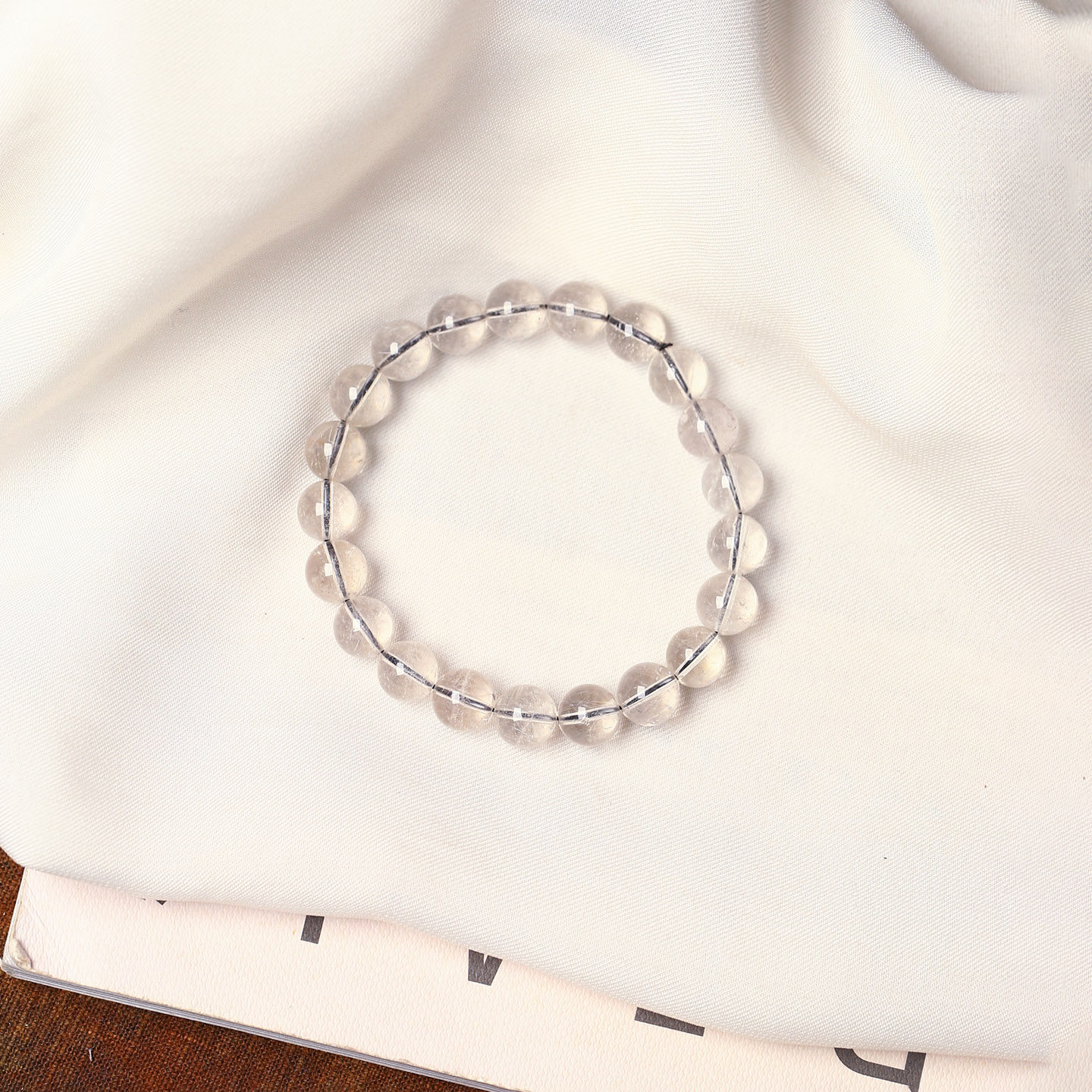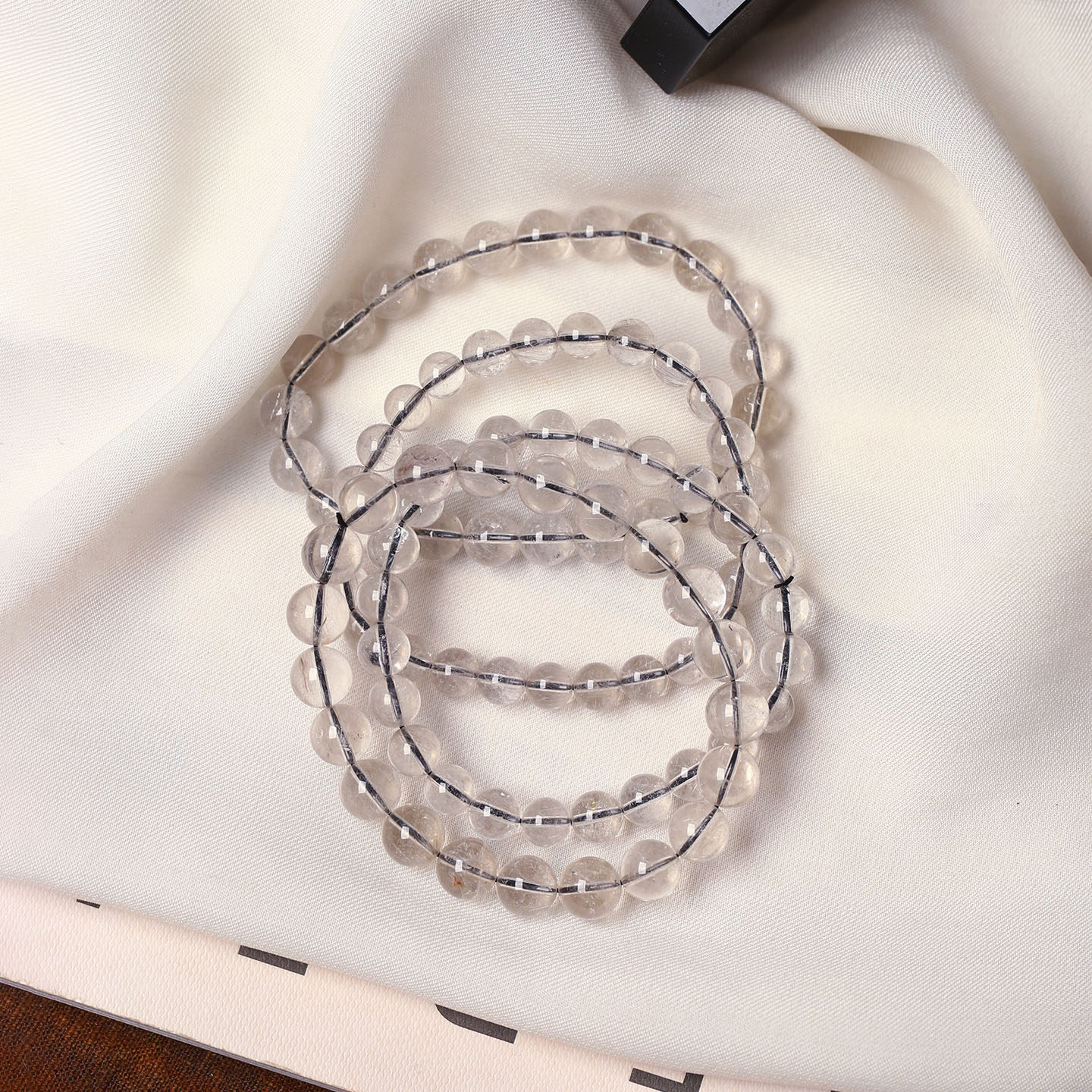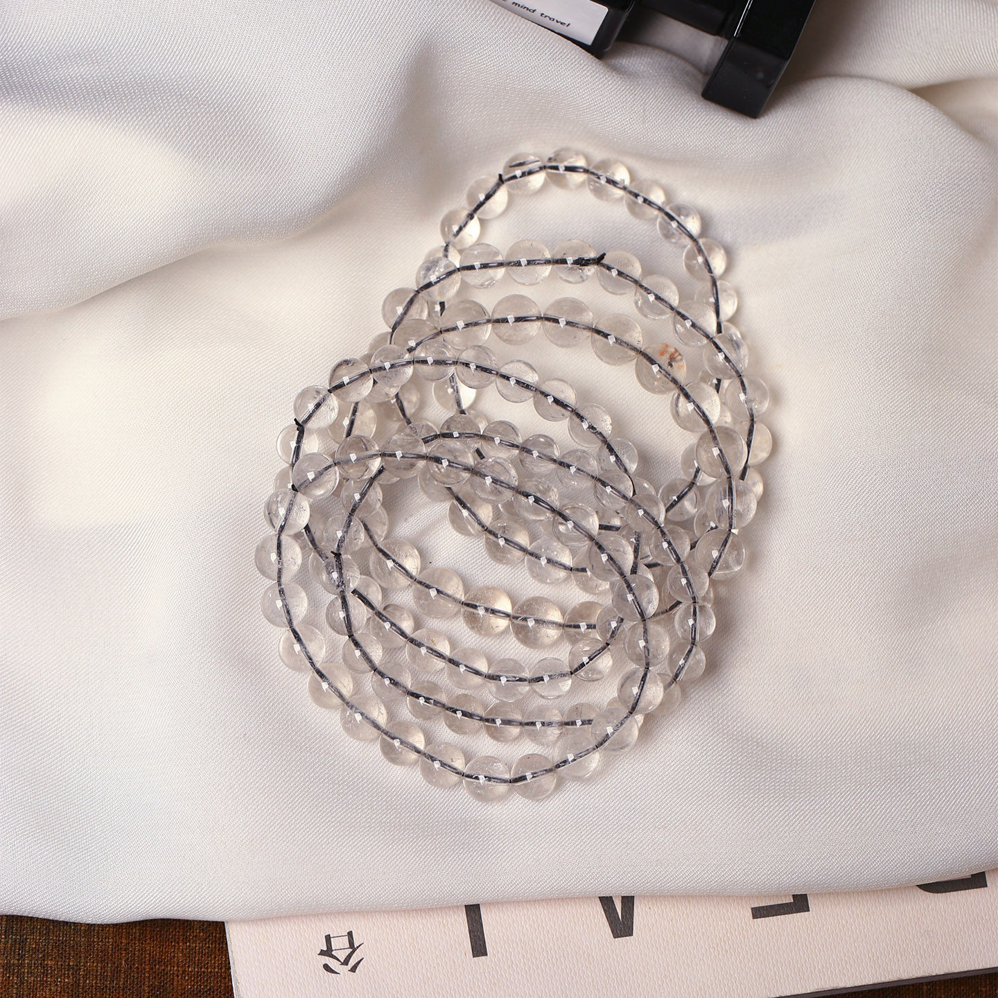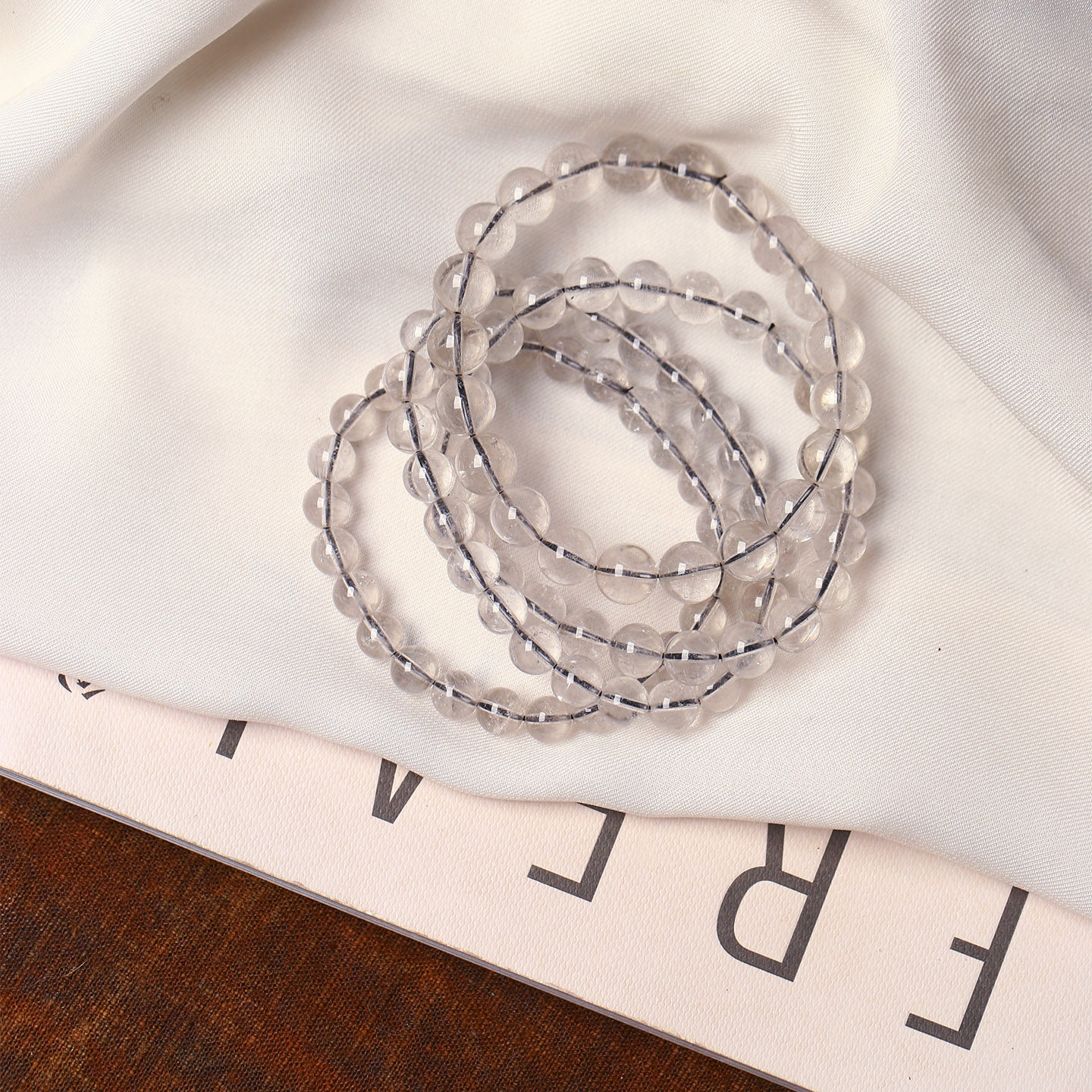 📚 工厂处理 天然水晶银发晶圆珠单圈手链 女款水晶发晶手串饰品礼物