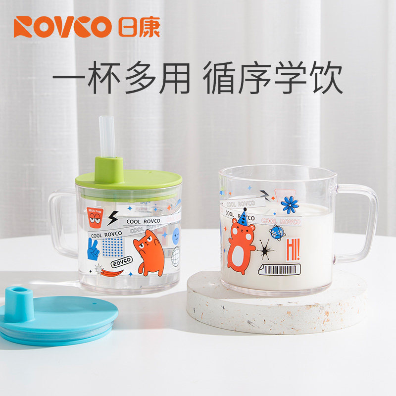 📚 日康儿童牛奶杯吸管杯婴儿6个月以上带刻度宝宝喝水喝奶米糊杯