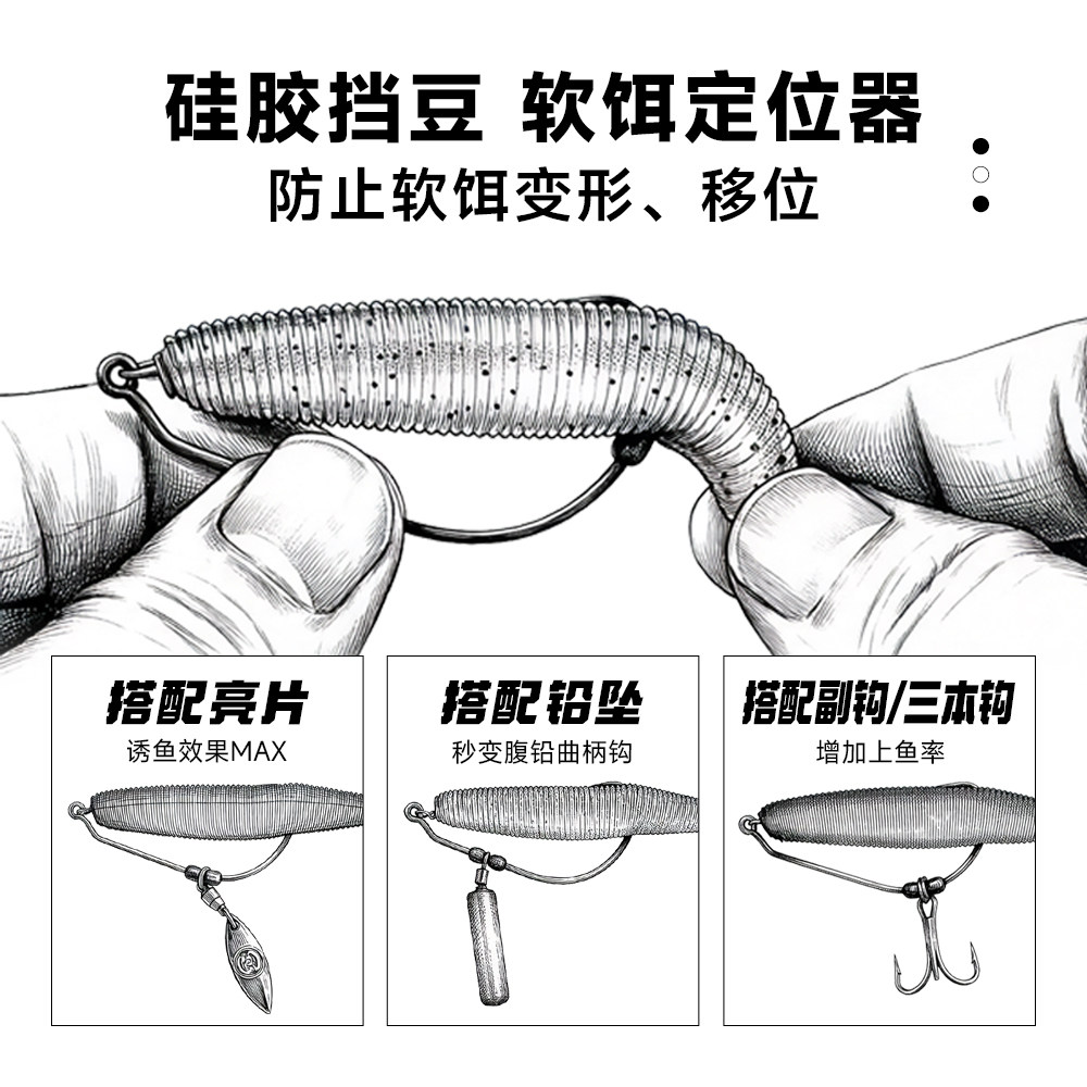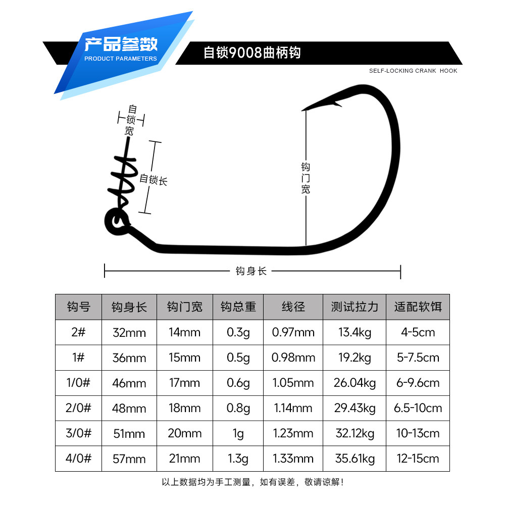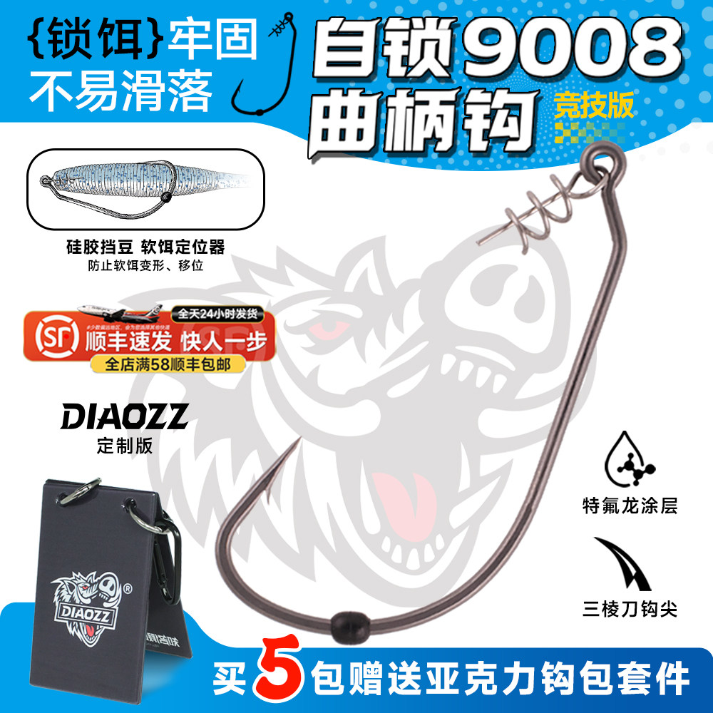 📚 钓之猪路亚弹簧锁针防脱自锁宽幅曲柄钩防爆软饵软虫钩加强黑鱼钩