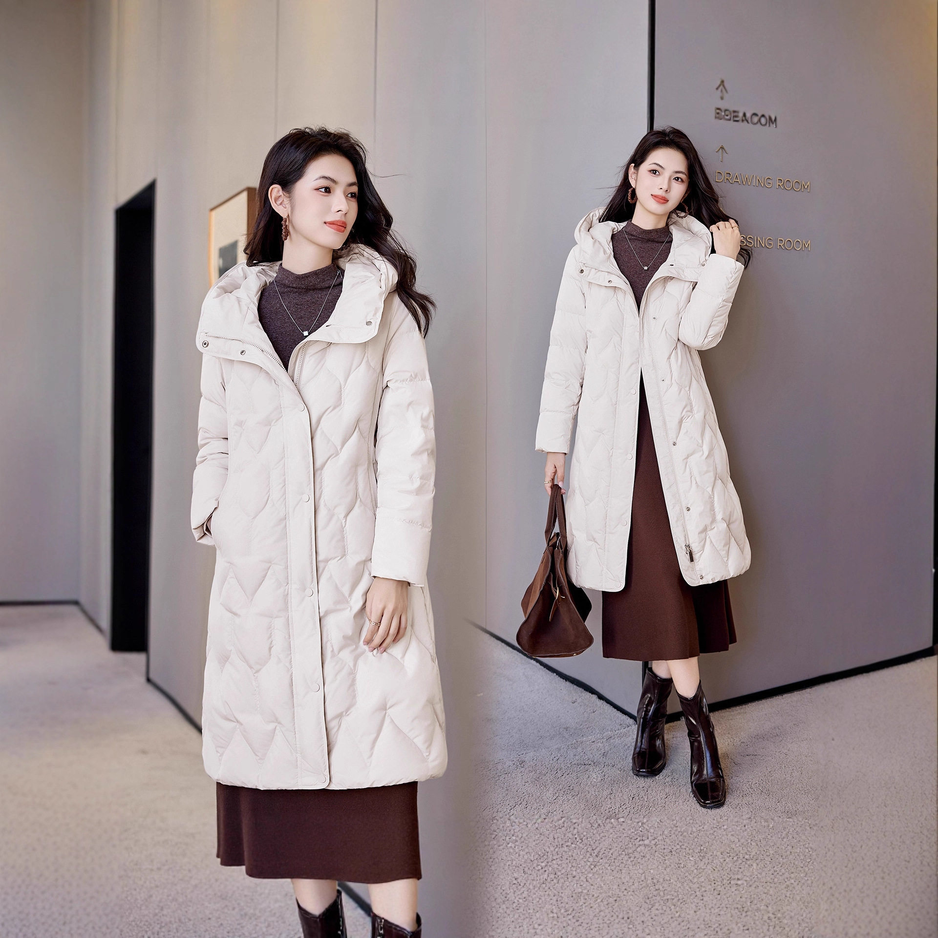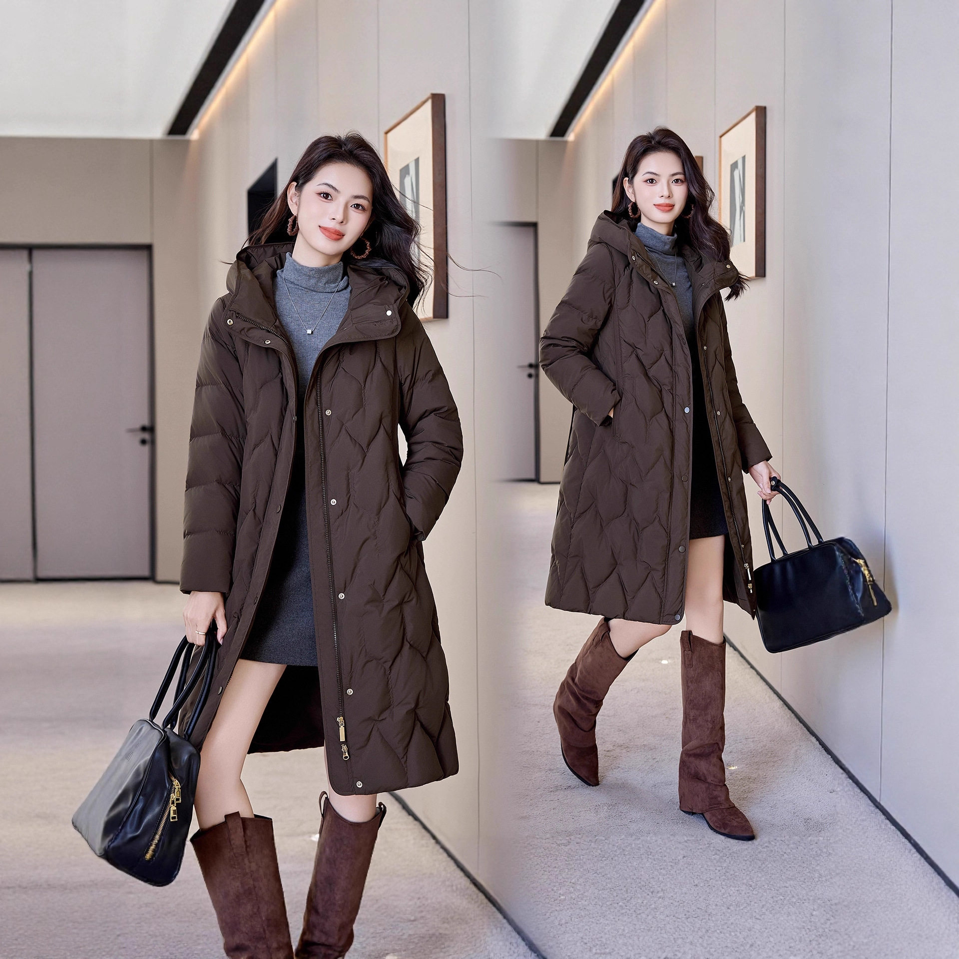 📚 品牌正品高充绒量90白鸭绒加厚品羽绒服女冬哈尔滨抽带中长款保暖