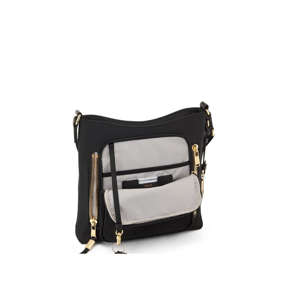 📚 自营欧洲直邮Tumi途明 Voyageur女士黑色/金色尼龙拉链开合斜挎包