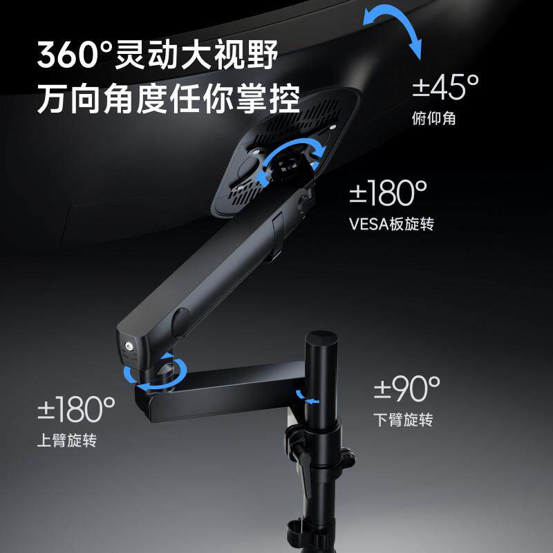 📚 Brateck北弧显示器支架机械臂倒装式免打孔夹持吊装托 托架臂E500