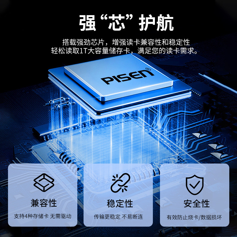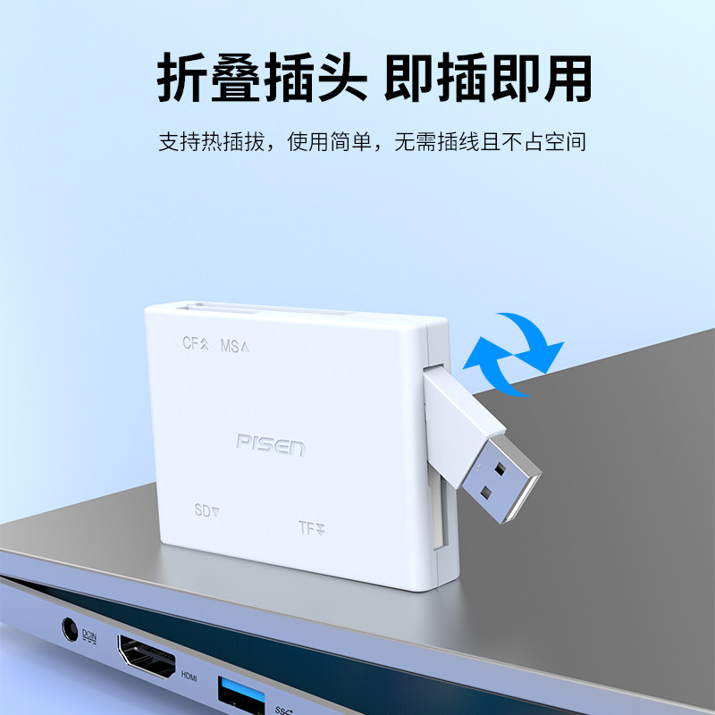 📚 品胜多合一读卡器USB2.0储存卡sd卡转换器TF小卡记录仪多功能单反相机CF大卡SD索尼MS笔记本电脑通用折叠插头