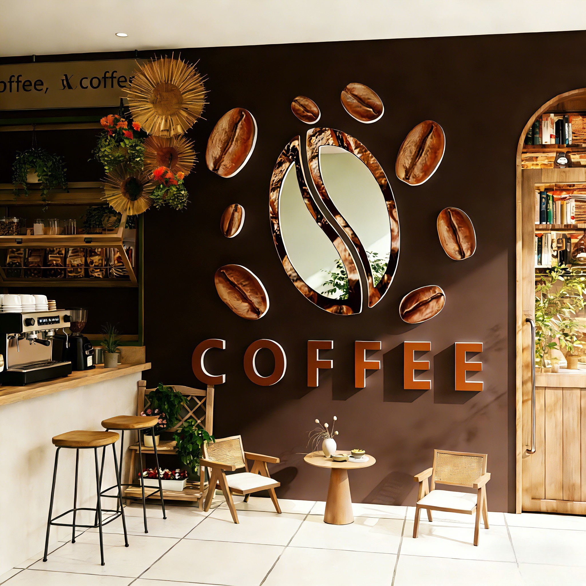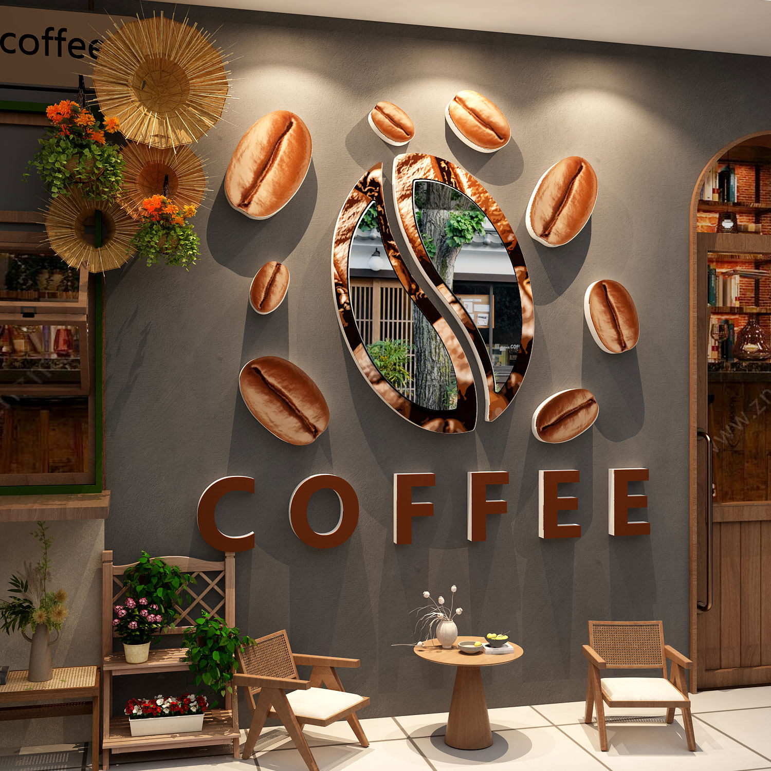 📚 咖啡豆镜子网红打卡拍照区布置店铺门头吸引顾客神器奶茶厅角造景