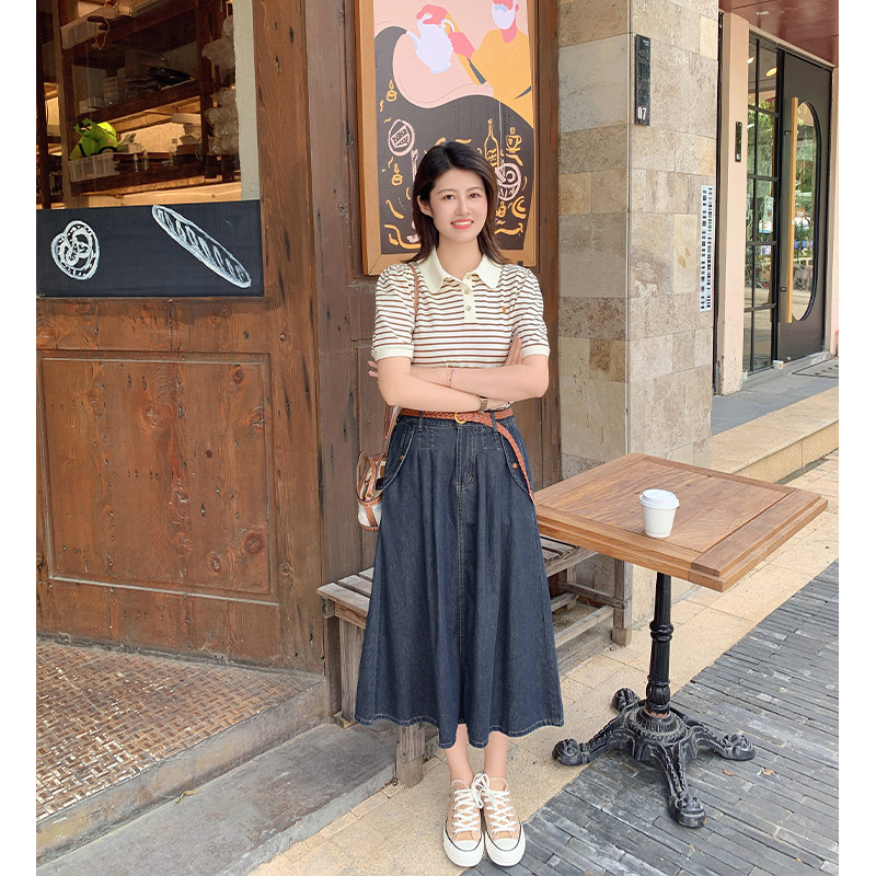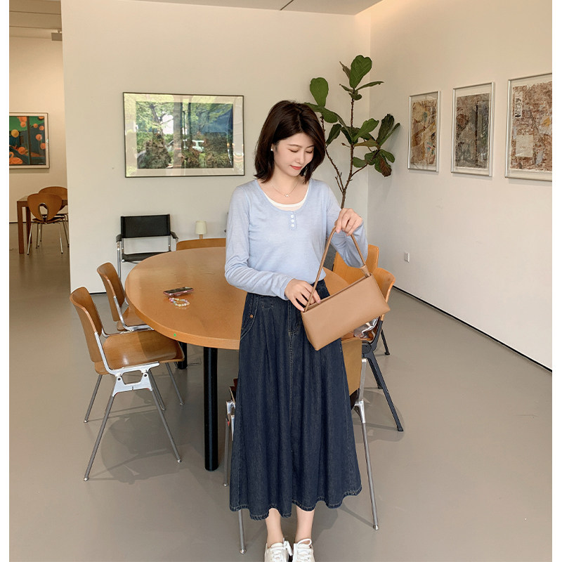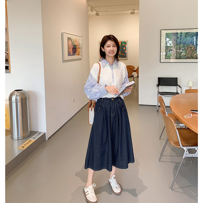📚 【10.24 6折福利款】经典复古深蓝色高腰显瘦百搭A字牛仔半身裙子