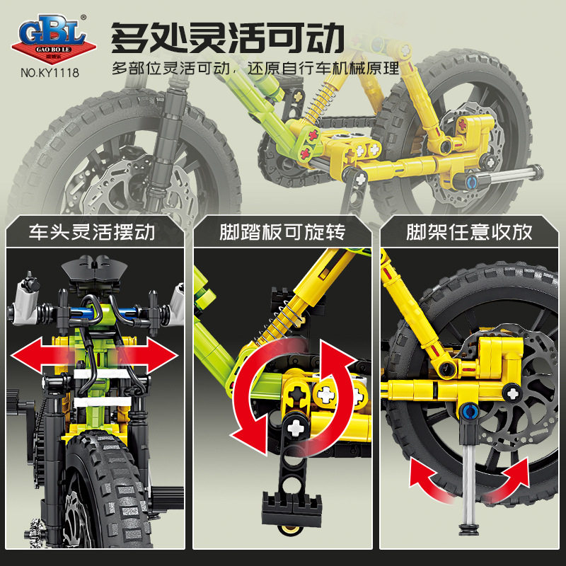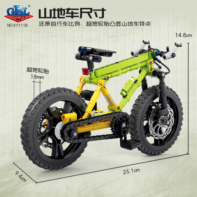 📚 开智高博乐山地车拼装积木自行车组装模型摆件男孩益智玩具车礼物