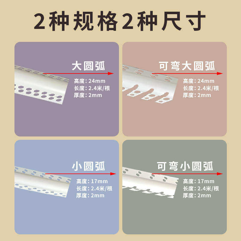 📚 圆角弯半圆角保护条圆弧大小条角圆弧拱形造型线条可阳防撞护收口