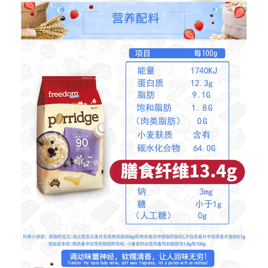 📚 澳洲进口澳菲顿燕麦片1Kg即食免煮代早餐无蔗糖速食营养冲饮谷物