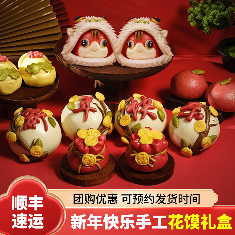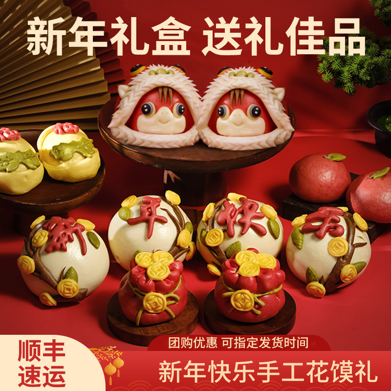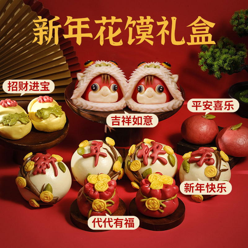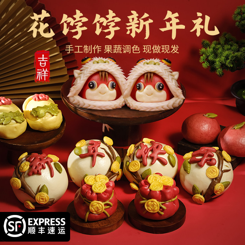 📚 马年新年金元宝花馍山东胶东醒狮马馒头年货节礼盒春节送礼礼物