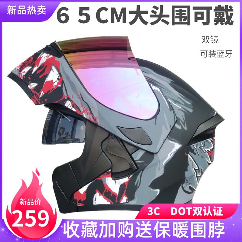 📚 电动摩托车3C认证揭面盔65男码头盔大头围3XL全盔DOT骑行踏板车