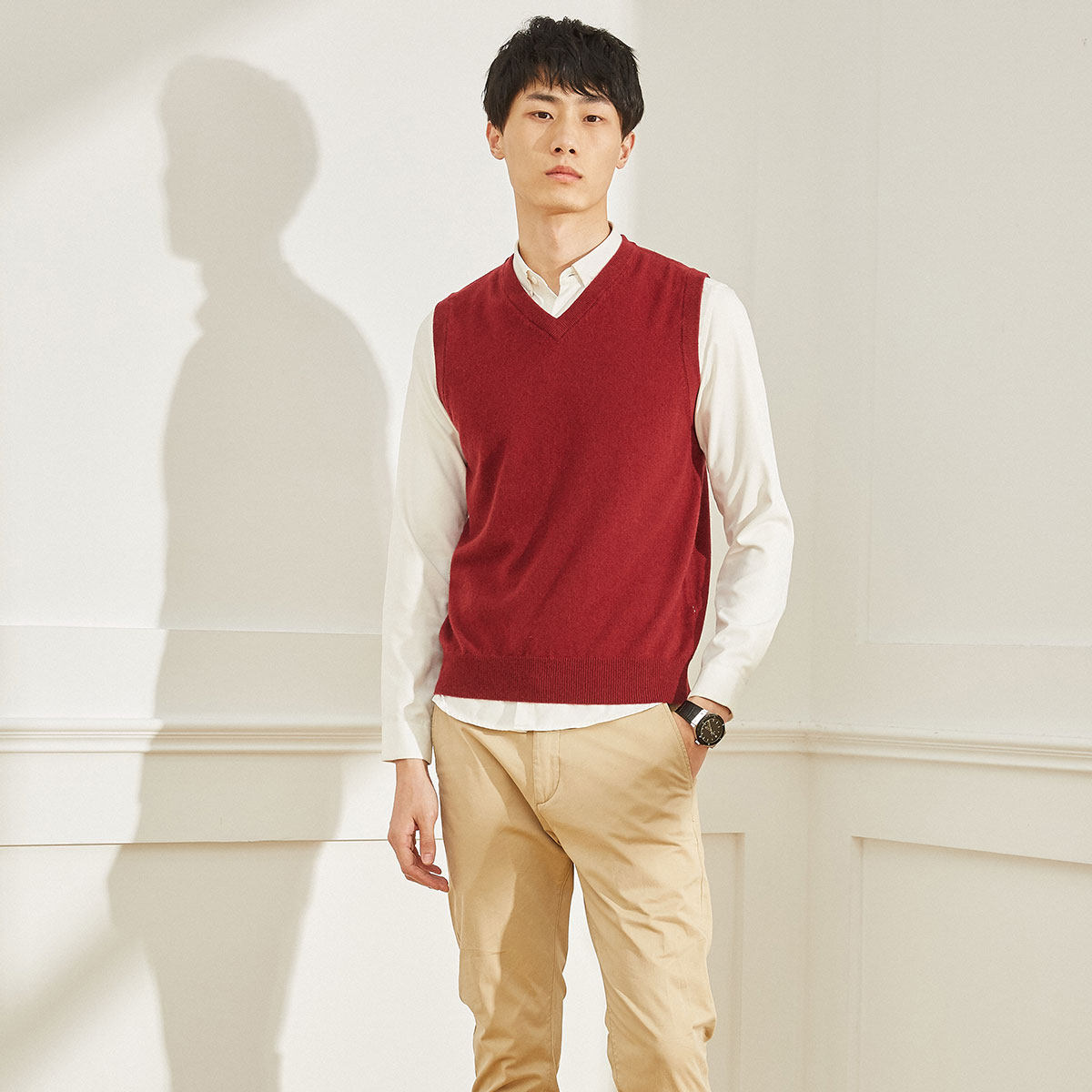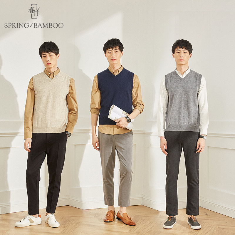 📚 春竹2026春季新款V领羊绒衫100%羊绒男套衫背心内搭针织毛衣上衣