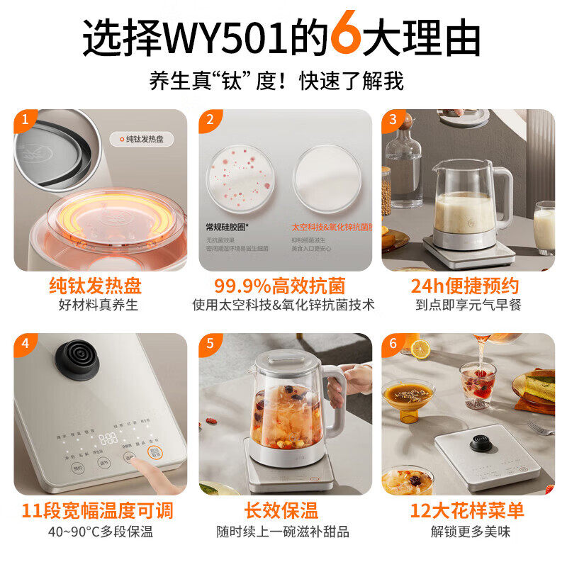 📚 九阳纯钛养生壶家用多功能办公室小型全自动烧水壶花茶壶煮茶器