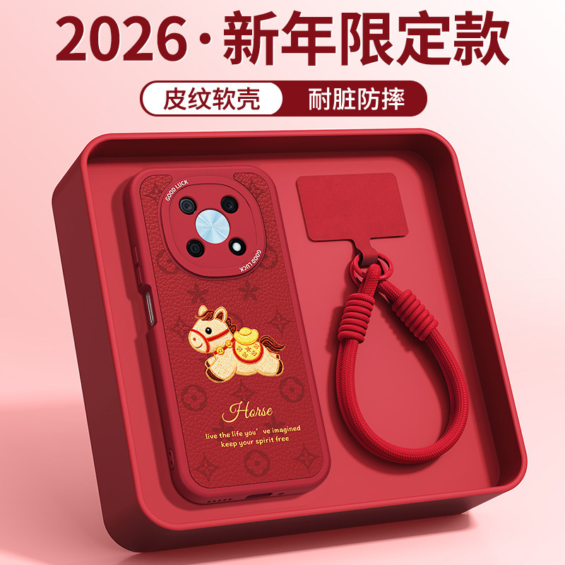 📚 新年印花小马适用华为Nzone50Pro手机壳SP210新款智选5G中国移动por小羊皮硅胶红色2026马年过年套防摔男女后