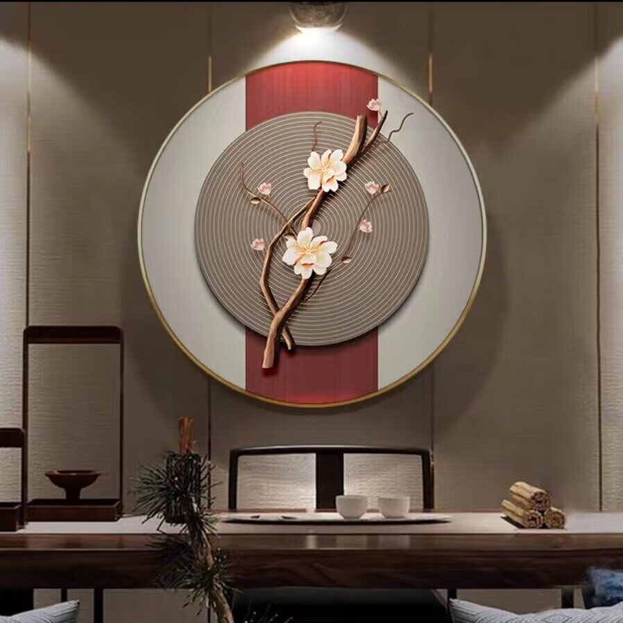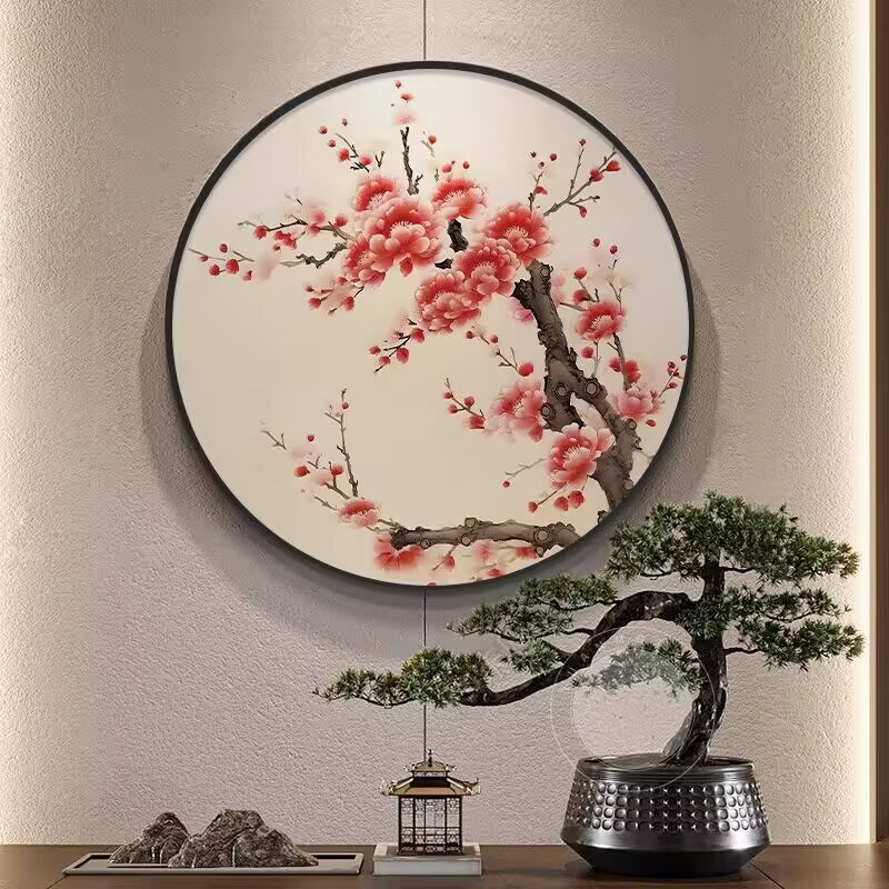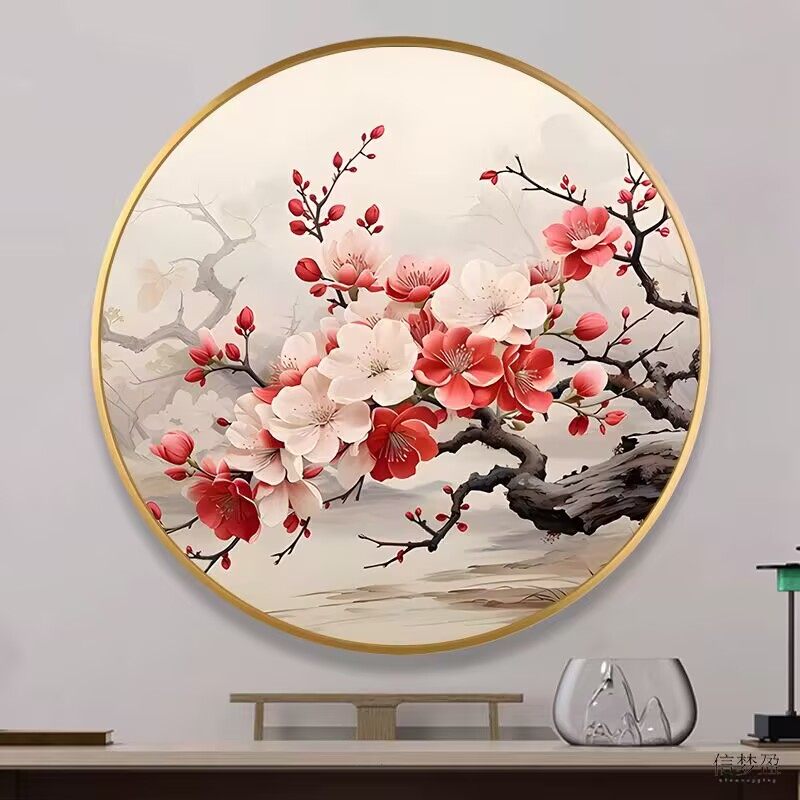 📚 梅花入户玄关装饰画古风茶楼包厢墙面艺术壁画新中式圆形餐厅挂画