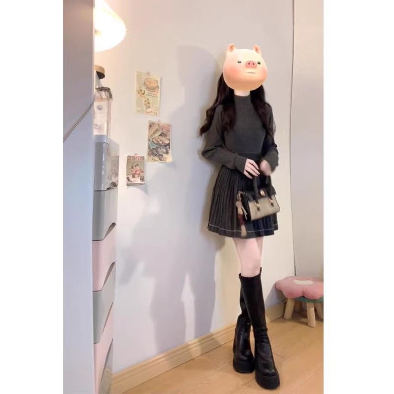 📚 单件/韩系小香风穿搭套装秋冬季立领打底衫A字半身裙呢子外套女装