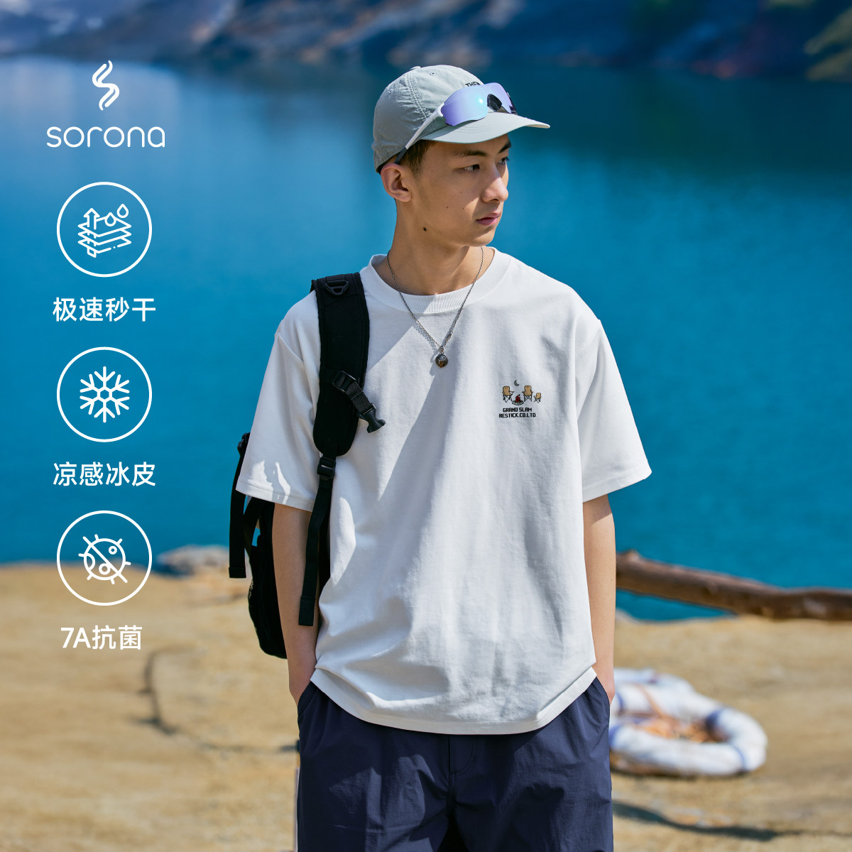 📚 RESTICK Sorona冰川凉感夏季手绘露营印花T恤 7A抗菌运动速干短袖