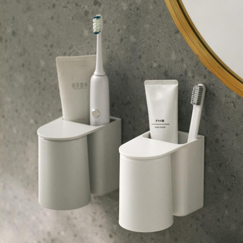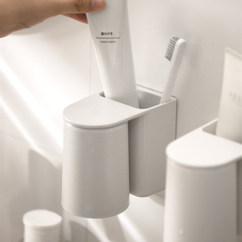 📚 日式刷牙杯放置牙刷置物架免打孔牙具创意牙杯网红白色嗽口杯套装
