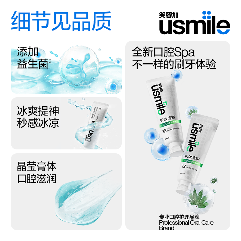 📚 usmile笑容加长效清新牙膏长效去口气清洁口腔牙齿清洁成人