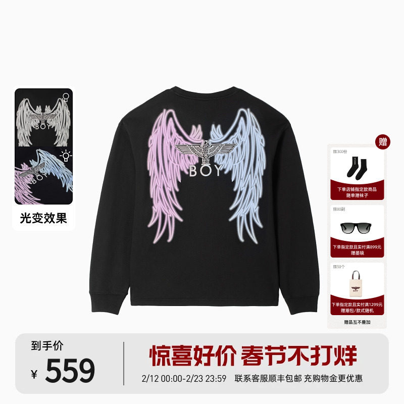 📚 【霓虹天使】BOYLONDON春季情侣卫衣休闲光变翅膀印花上衣N03912