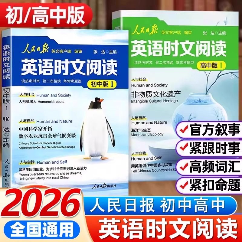 📚 2026新版人民日报英语时文阅读初高中快捷英语活页时文阅读理解与完形填空训练真题模拟选文紧跟热点资讯 聚焦国内外大事杂志速递