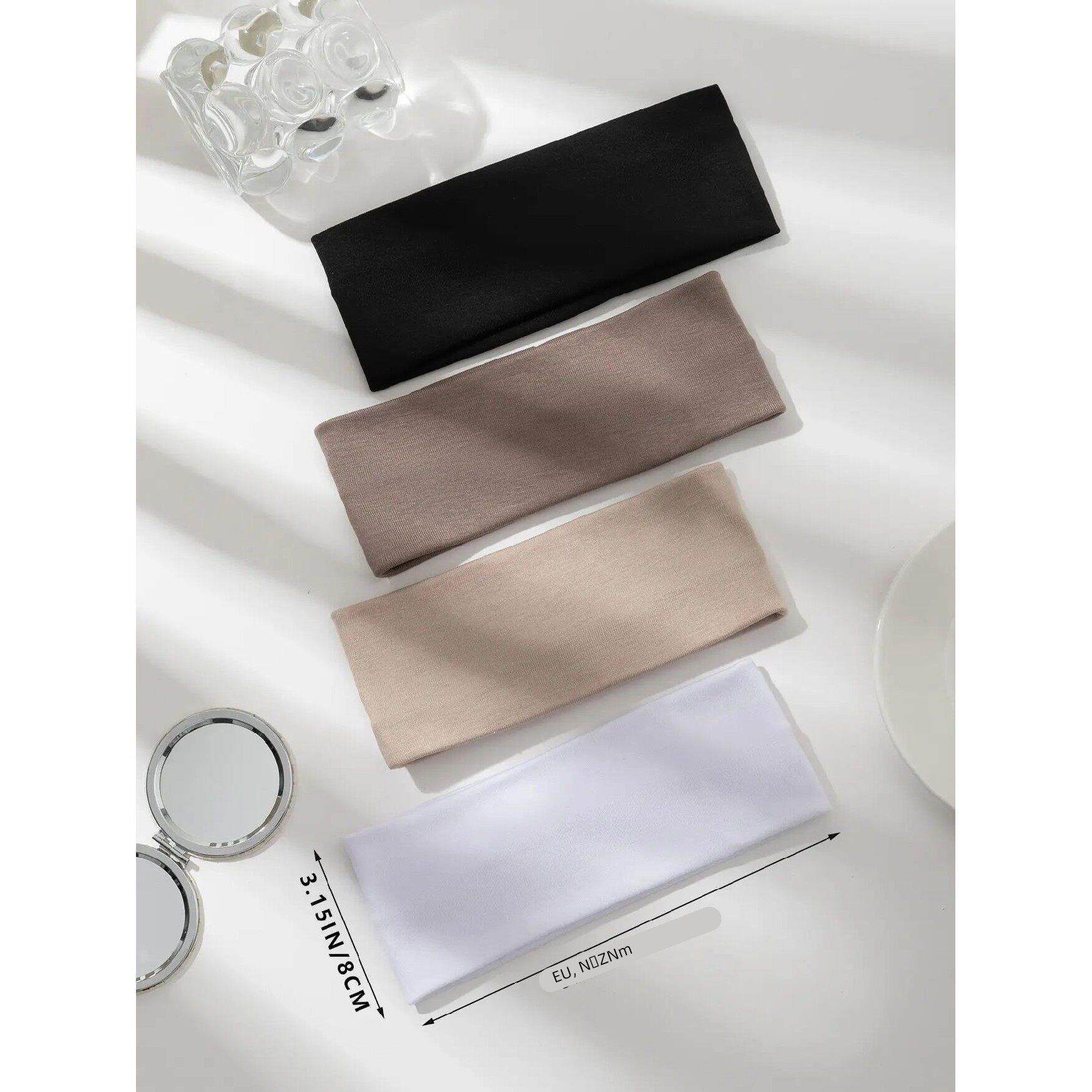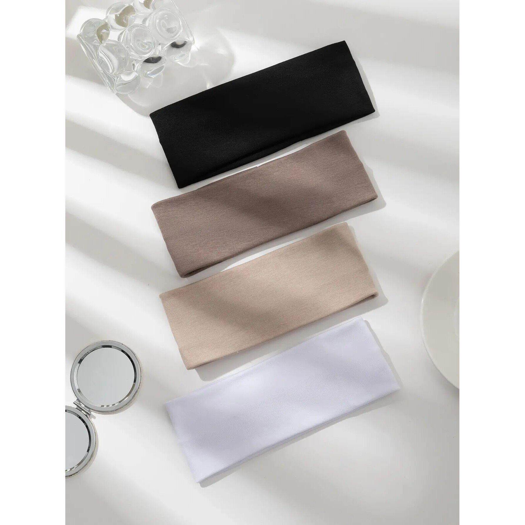 📚 4Pcs/SetWide Solid Color HairBands Soft Elastic Headband Wom