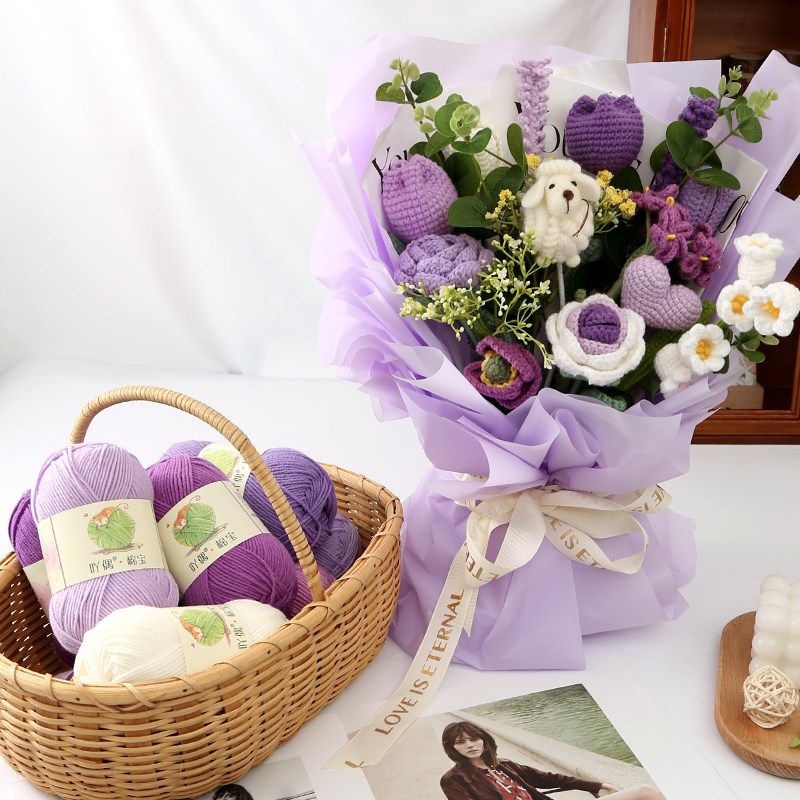 📚 4股精梳棉牛奶毛线团手工编织diy钩针花束材料包玩偶围巾宝宝毛衣