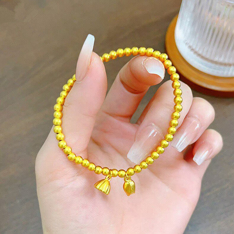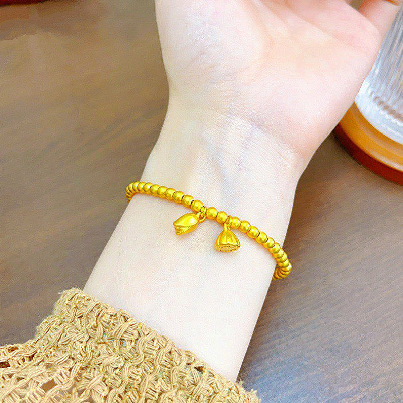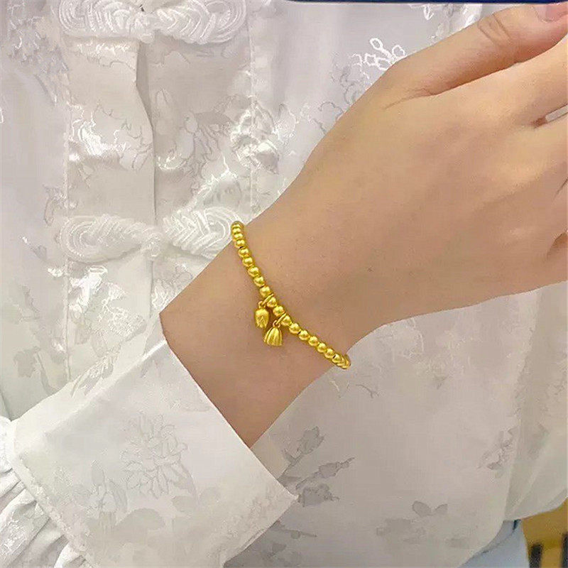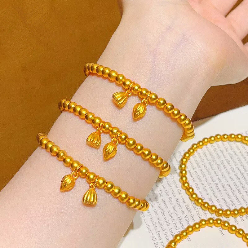 📚 新款24K黄金手链女仿金包银两世欢莲蓬转运珠古法手串手镯送女友