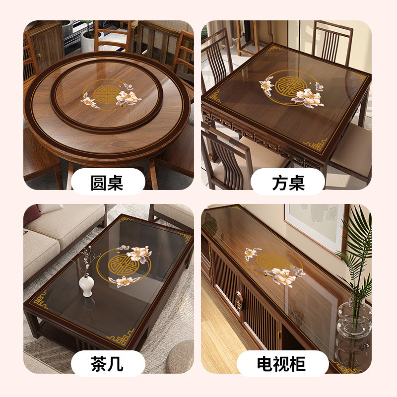 📚 新中式透明牀头柜盖布方形茶几桌布防水桌垫边几桌面保护垫PVC软