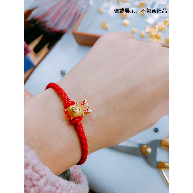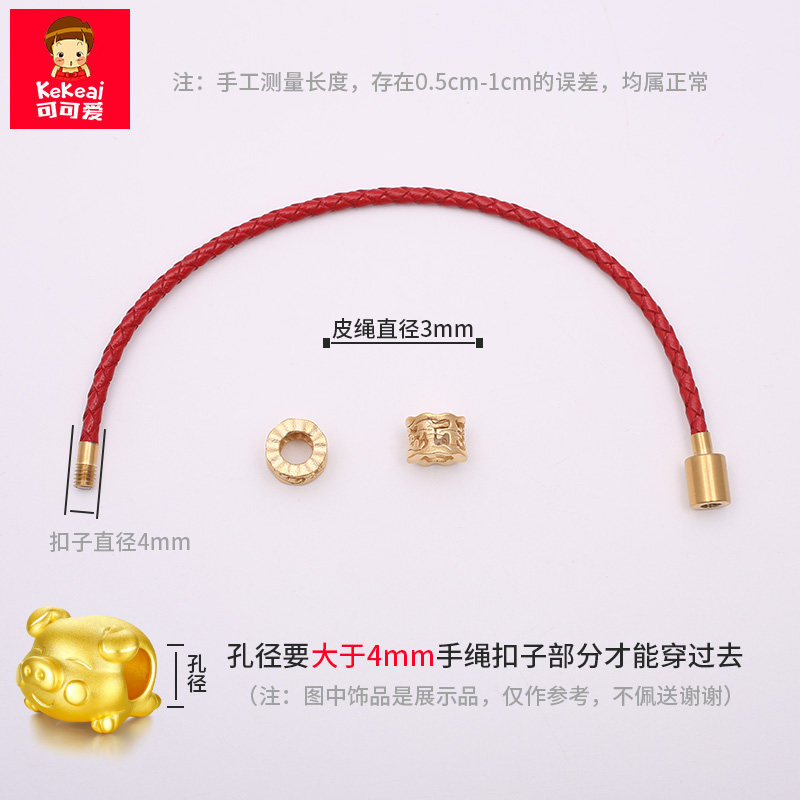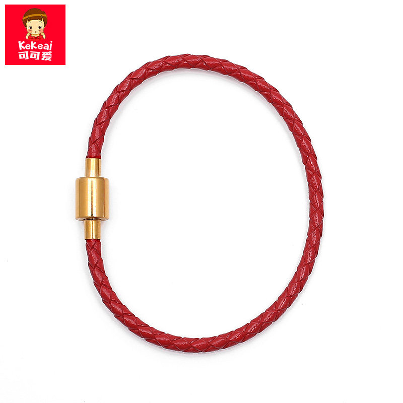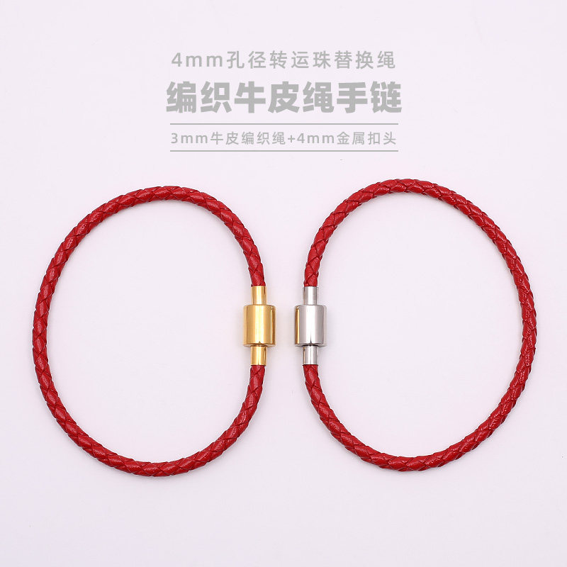 📚 可可爱红色皮绳手链光面螺纹方扣黑手绳转运珠替换绳本命年红绳子