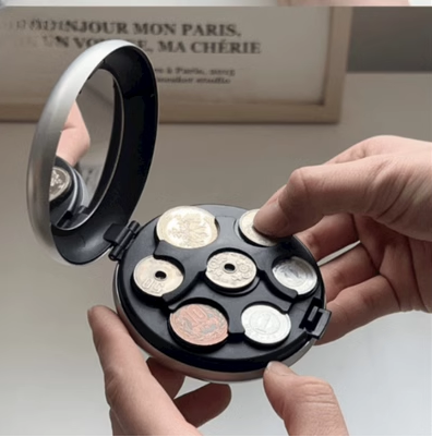 📚 日币美元欧元收纳分类神器硬币夹零钱包ABS材质塑料圆形铝制盒