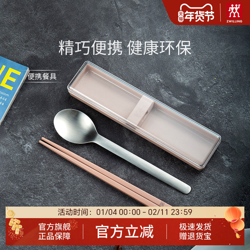 📚 双立人筷子勺子套装餐具一人用不锈钢三件套便携儿童小学生收纳盒