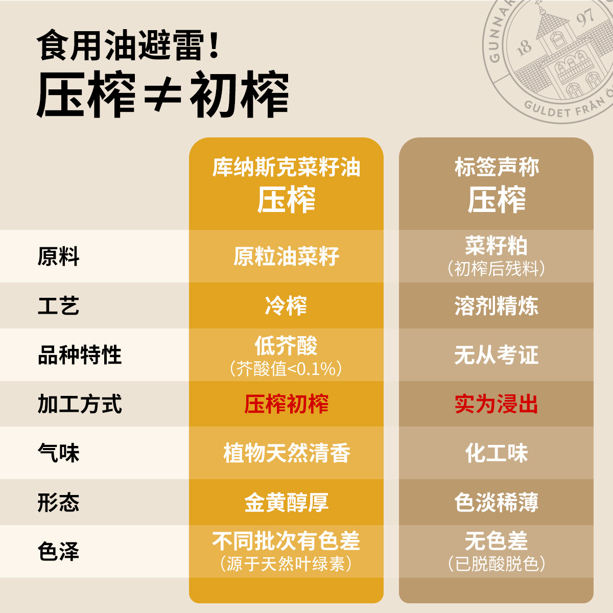 📚 瑞典原装进口库纳斯克冷榨菜籽油低芥酸非转基因食用油家用 1L