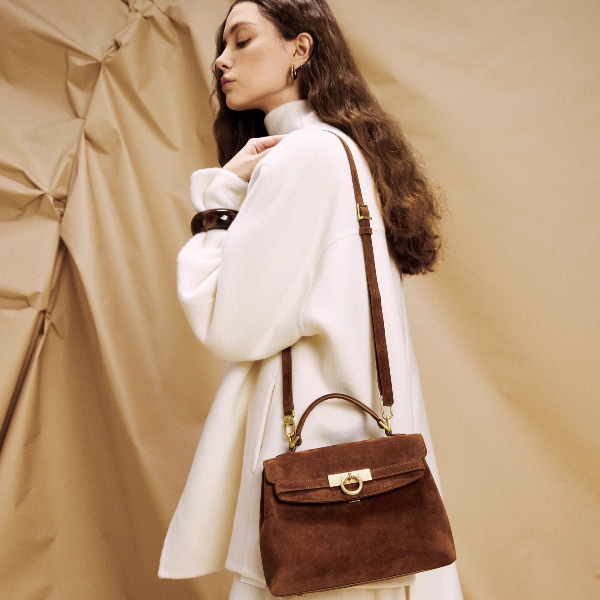 📚 Parisa Wang格蕾丝Grace系列小号手提包麂皮头层羊皮超软凯莉包