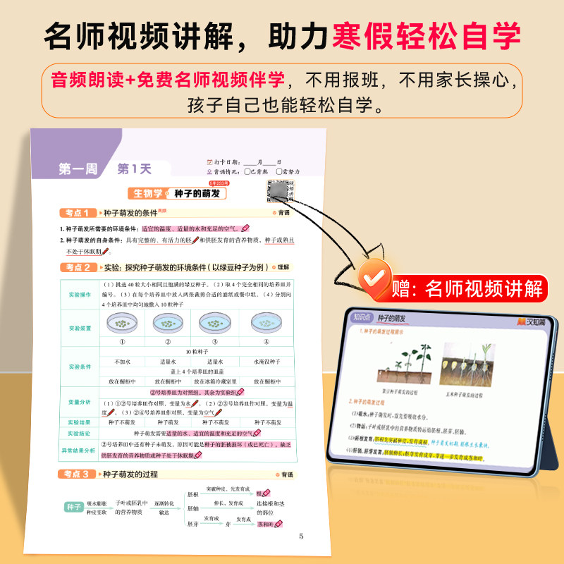 📚 2026汉知简 语数英寒假必背一本全七年级下册语文数英语同步新教材初一全国通用政史地生小四门寒假衔接预习考点背诵名师视频讲解