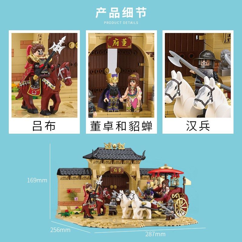 📚 迪库三国小侠20504积木吕布刺董卓空城计国潮古风建筑场拼装玩具