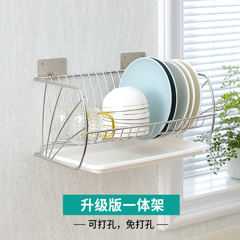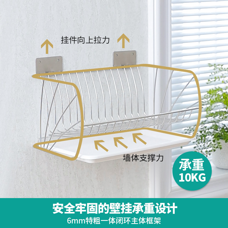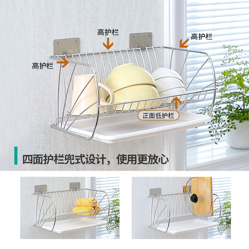 📚 南北向304不锈钢单层壁挂式碗架沥水架 独立式厨房挂墙滴水碗盘架
