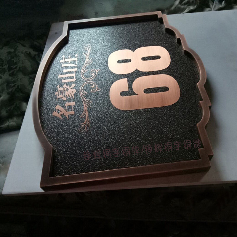 📚 纯铜公司招牌仿古铜牌别墅门牌酒店牌蚀刻牌匾紫铜字复古广告做旧
