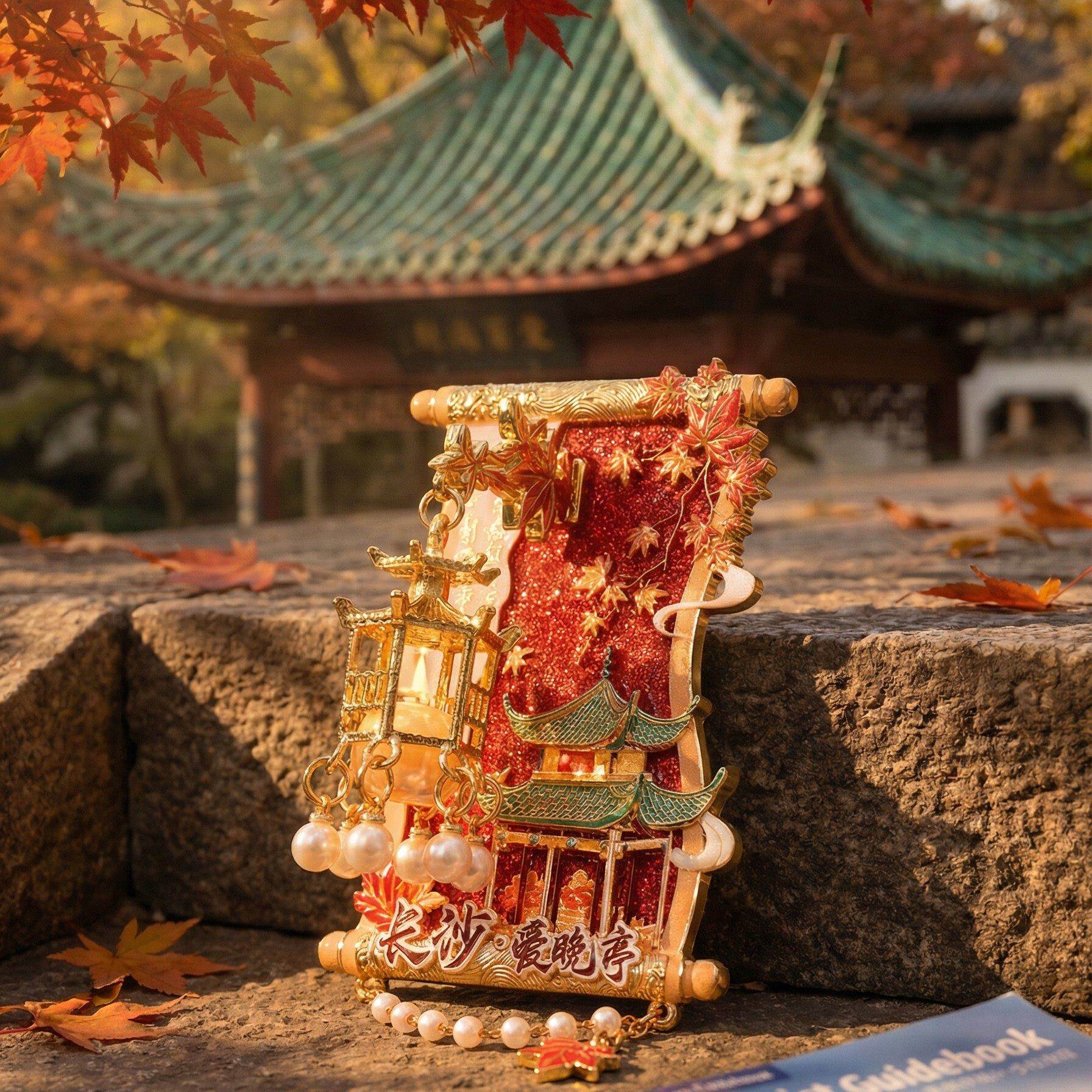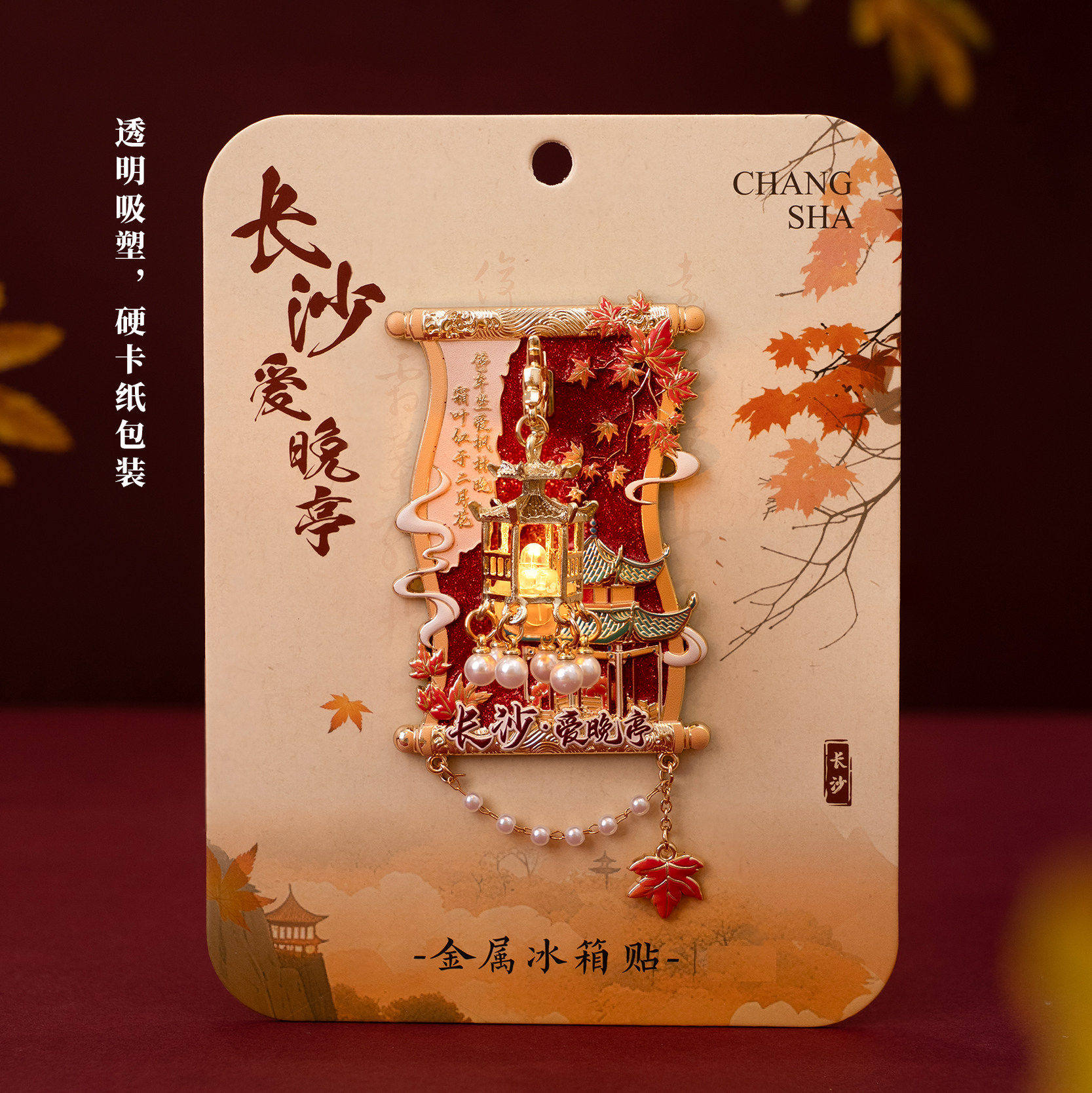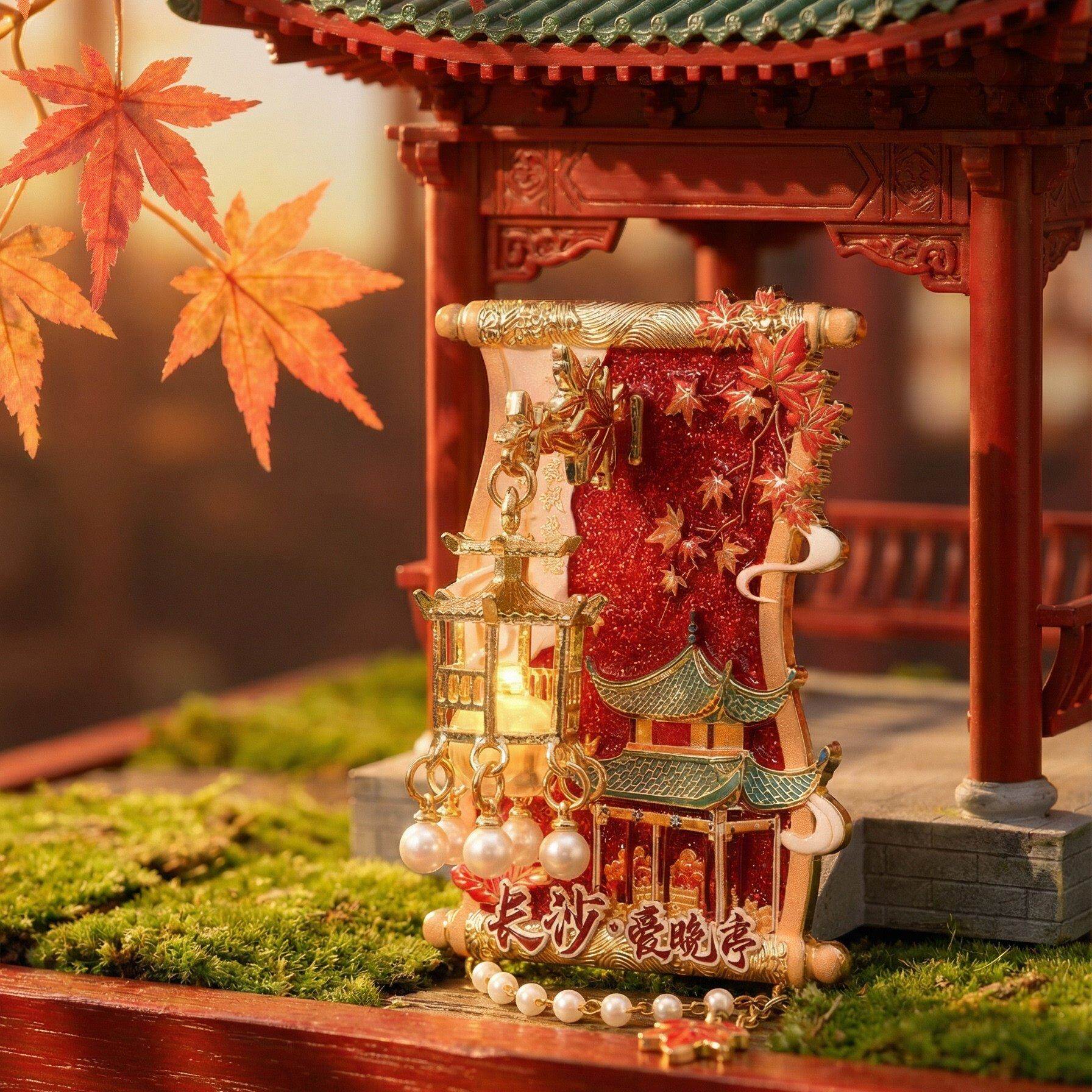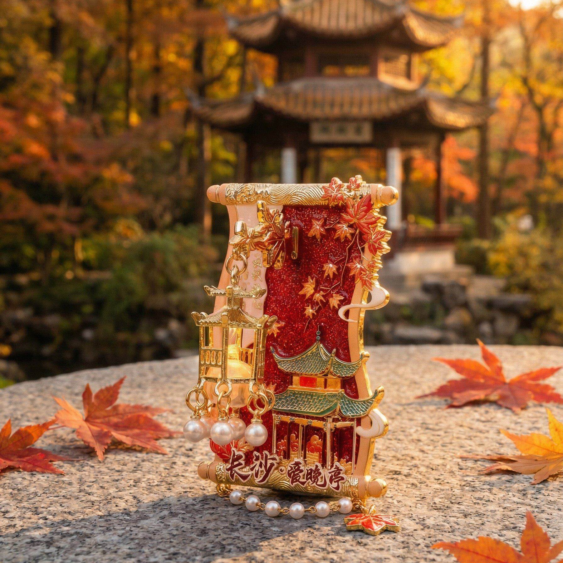 📚 长沙文创爱晚亭枫叶吊坠金属冰箱贴发光灯笼旅游纪念品收藏伴手礼