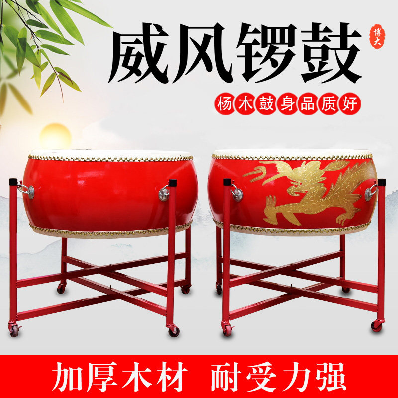 📚 大鼓牛皮鼓中国红堂鼓演出锣鼓舞蹈乐器敲打节奏扁鼓成人儿童龙鼓