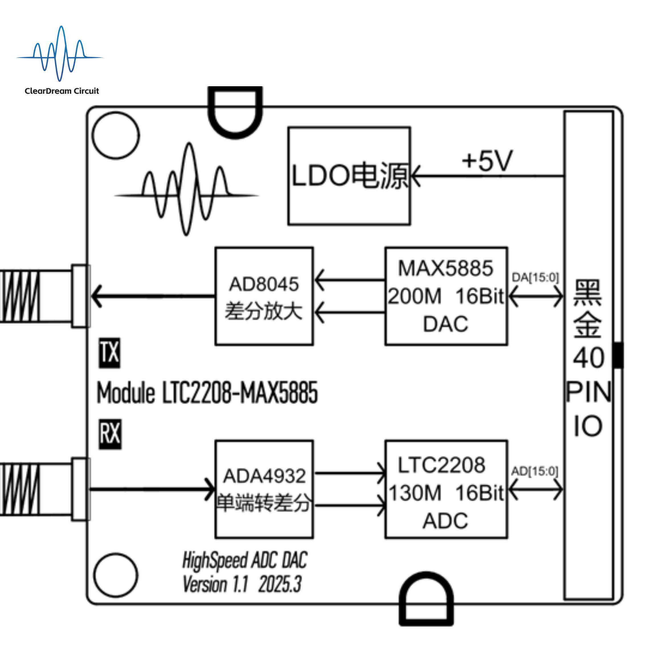 📚 高速ADC模块,高速DAC模块,任意波形产生/采集,LTC2208,MAX5885