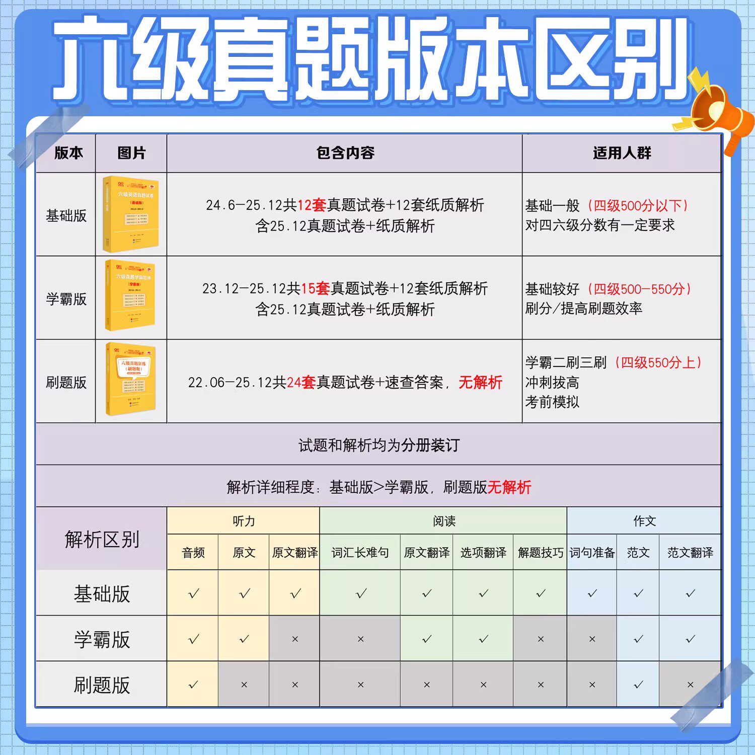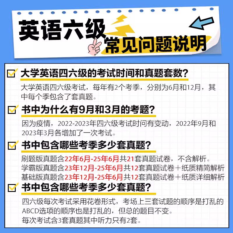 📚 张剑黄皮书英语六级真题详解备考2026年6月黄皮书四六级英语真题试卷大学生英语四六级词汇六级阅读四六级听力资料