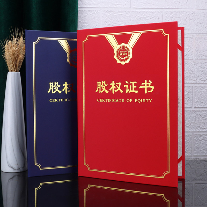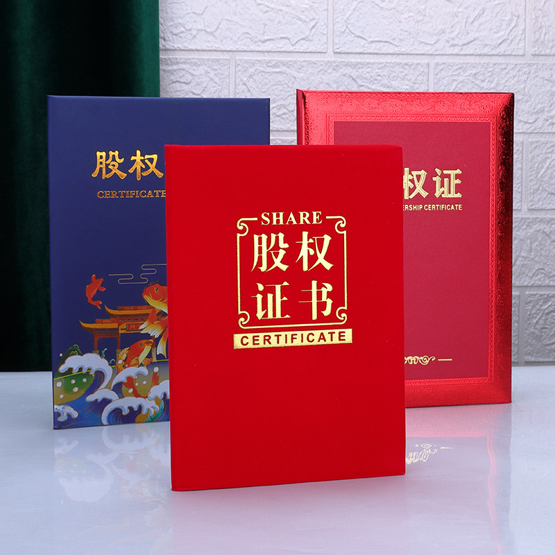 📚 股权证书股东证书外壳订制合伙人证书定做出资证明书A4红绒面股份证书股权分配收益证书分红设计内页芯打印