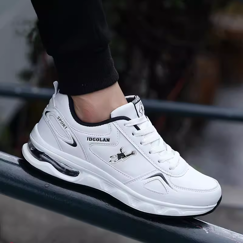 📚 乔丹格兰男款气垫跑鞋纯白防水旅游鞋春秋皮面纯黑色波鞋运动男鞋