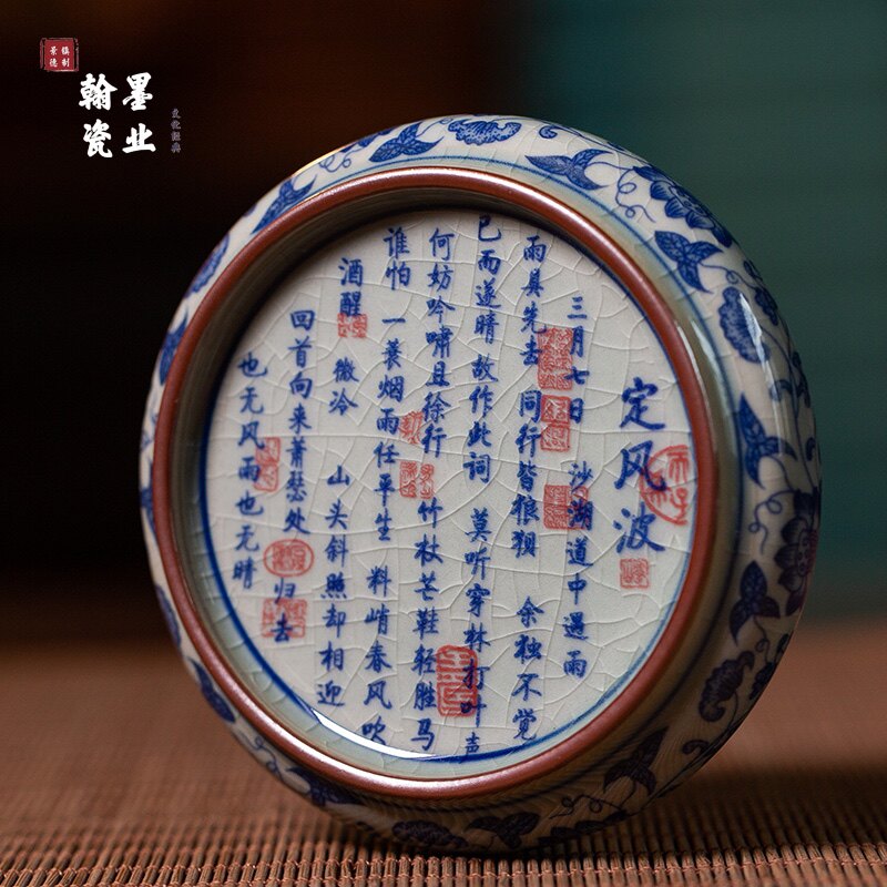 📚 景德镇青花瓷定风波盖置陶瓷茶杯垫子壶承盖子垫杯垫老陶泥茶壶垫