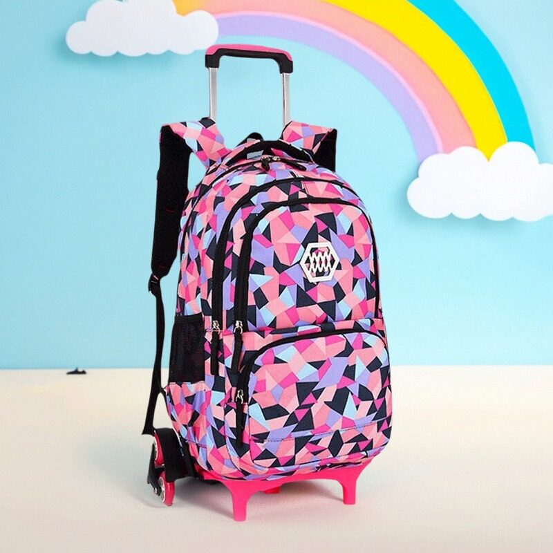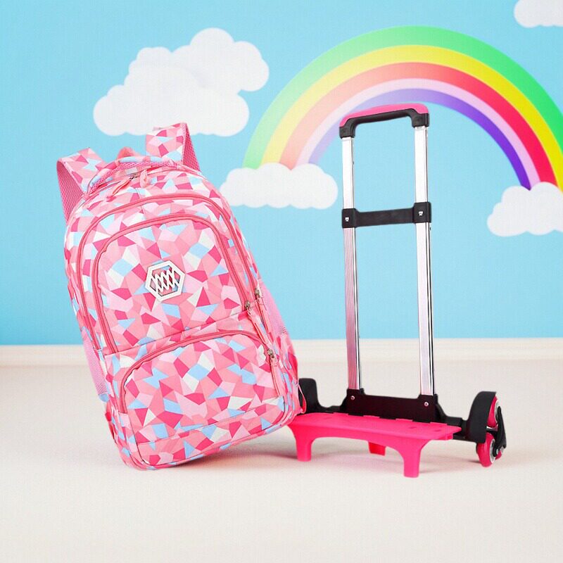 📚 拖拉杆书包带轮子青少年女孩初中生大容量可拆卸学生爬楼双肩背包