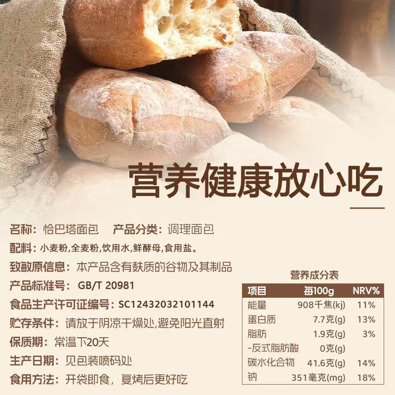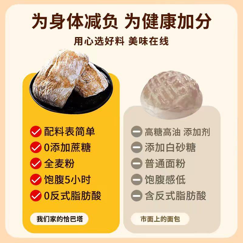 📚 央妈推荐恰巴塔面包无糖无油早餐低脂胚大号全麦恰巴塔面包旗舰店