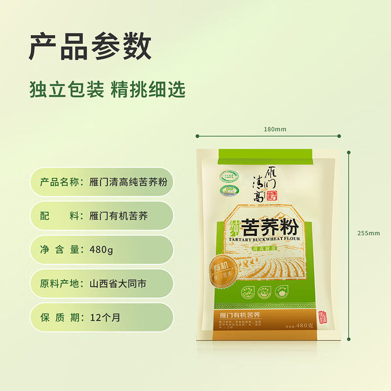 📚 雁门清高 有机苦荞面粉 纯荞麦面粉苦荞生粉杂粮面粉有机苦荞生粉