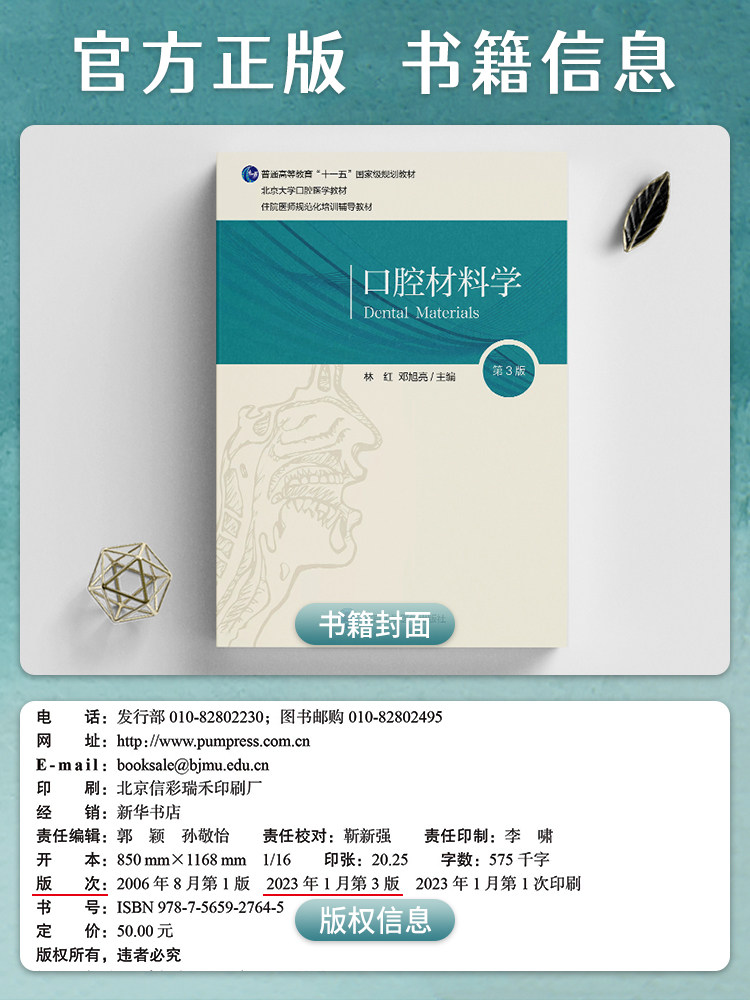 📚 口腔材料学 第3版 林红 邓旭亮主编 北京大学口腔长学制教材第3轮 住院医师规范化培训辅导教材 北京大学医学出版社9787565927645