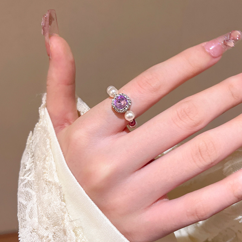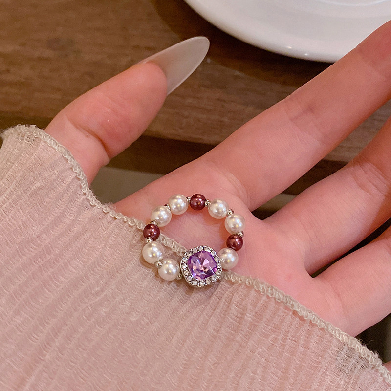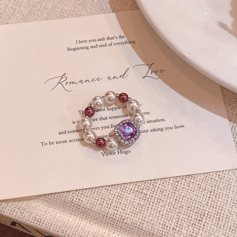 📚 韩系ins闪钻弹力戒指小众设计女轻奢气质高级感戒指紫色方糖首饰