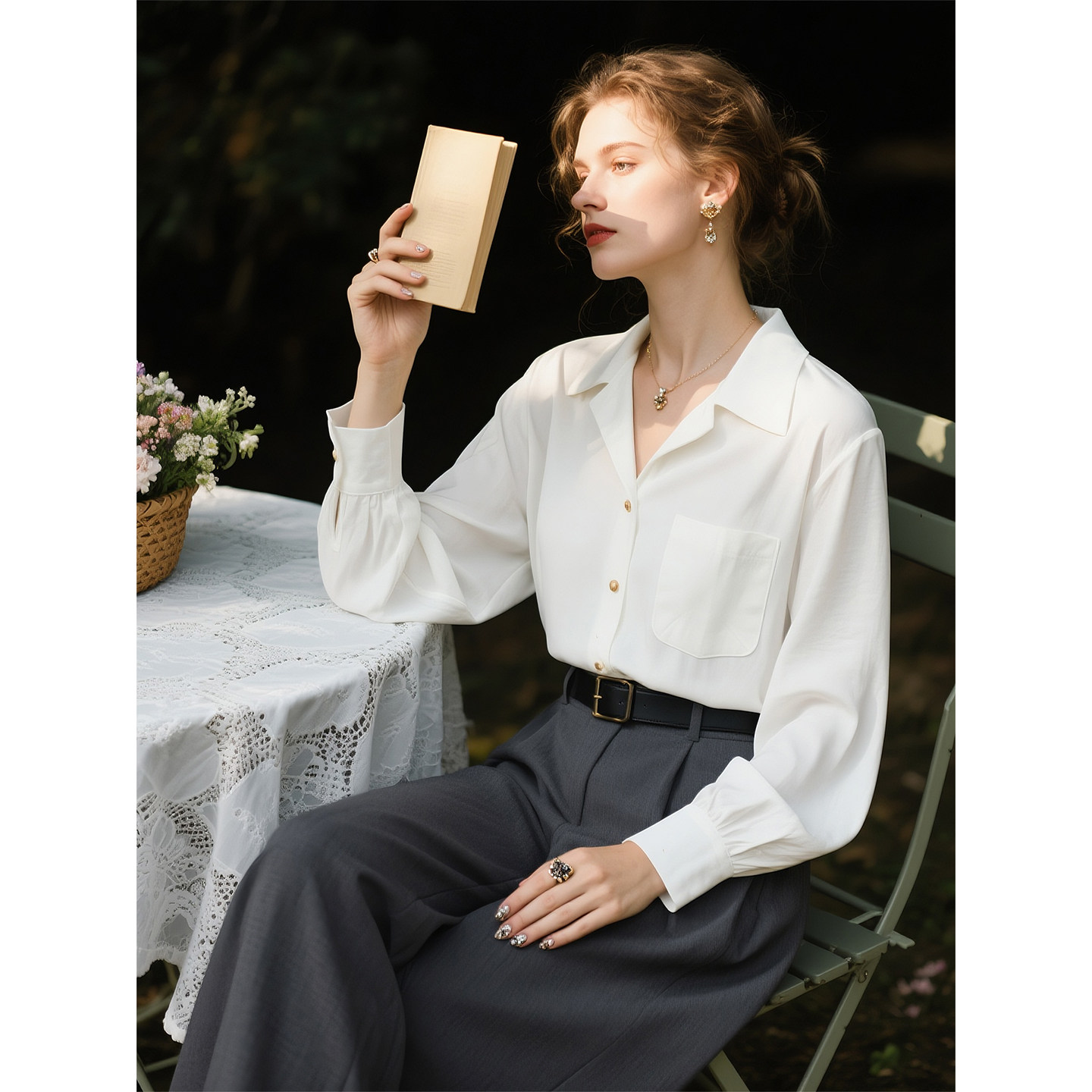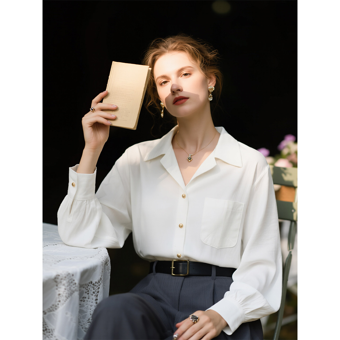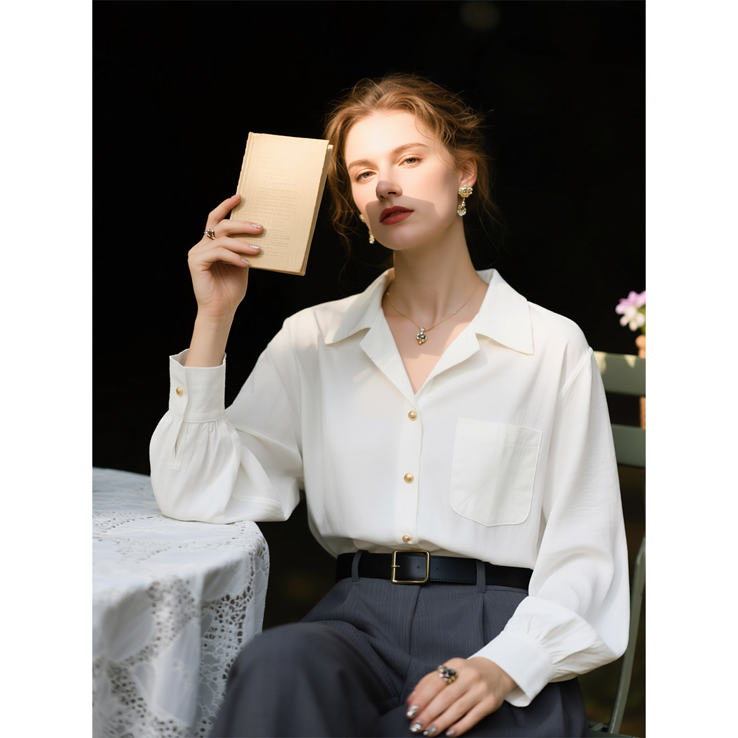 📚 白色古巴领长袖衬衫女2026年春季新款通勤风宽松高级感叠穿衬衣